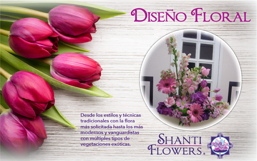 Shanti Flowers es una marca registrada definida por sellar con originalidad y gentileza cada uno de sus diseños y proyectos. Somos una joven empresa mexicana, conformada por un grupo laboral de amplia experiencia en conjunto, dedicada al desarrollo en diseño floral, la decoración de interiores, teorías del color, artes visuales, desarrollo creativo y logística de envíos.