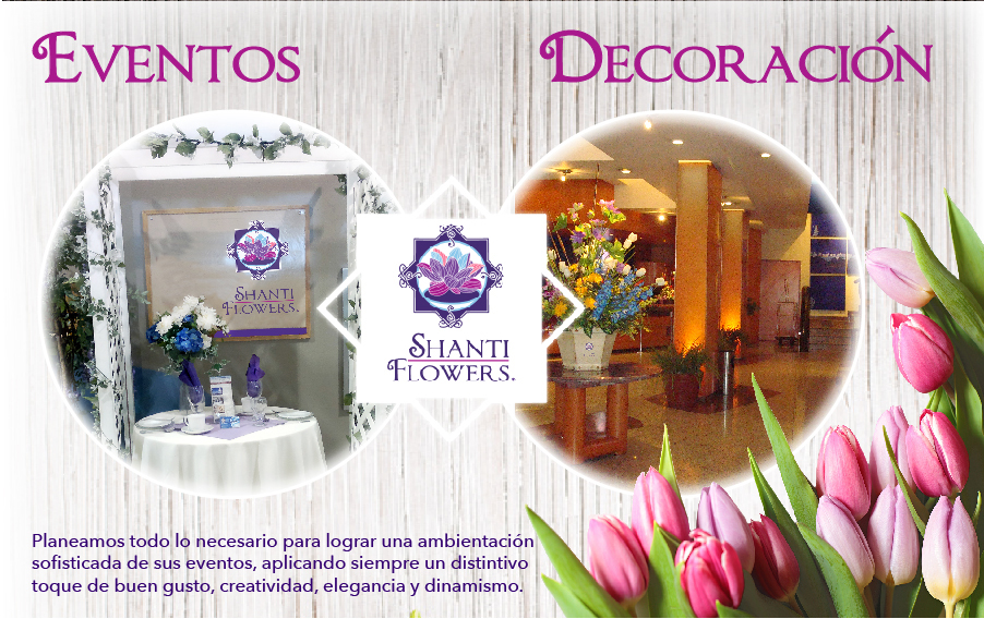Shanti Flowers es una marca dedicada a la producción, comercialización, distribución y desarrollo de diseños florales y artículos decorativos fabricados con diversos materiales y características en cada pieza. Dedicados también a la asesoría y planeación profesional de decoración y ornamentaciones florales para eventos y lugares de cualquier índole.